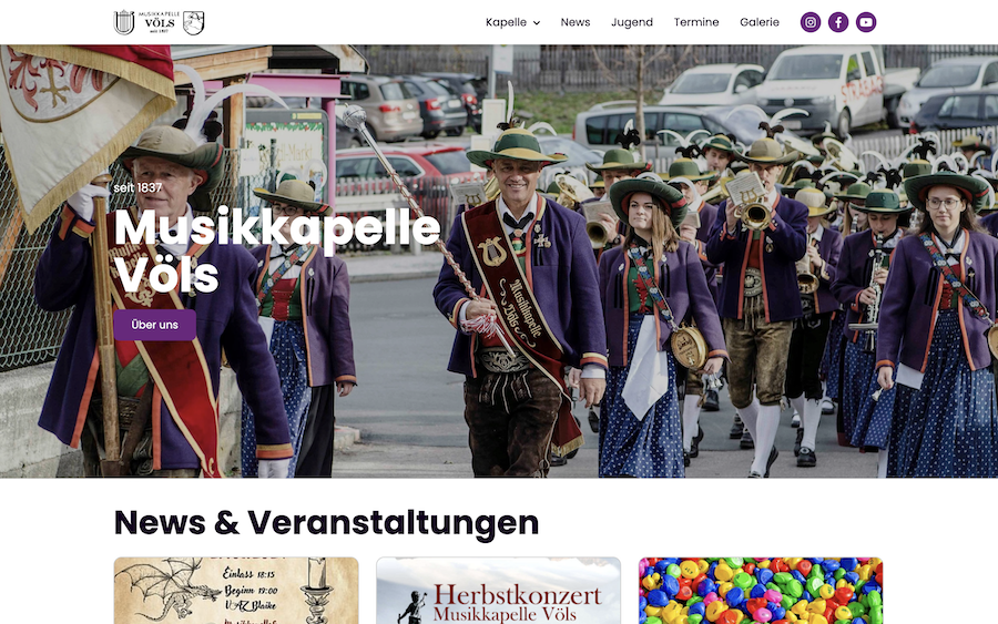 Ob Veranstaltungen, News oder Bilder zum letzten Konzert - die Website der Musikkapelle Völs bietet alles auf einen Blick.